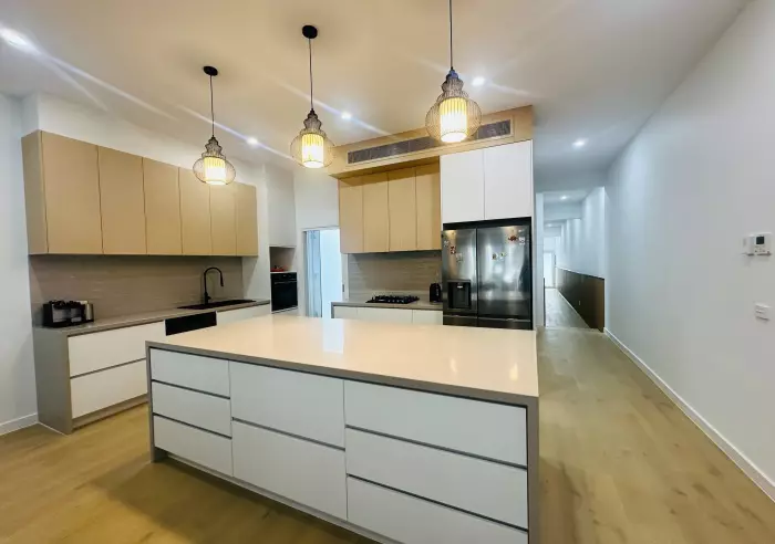 • Grand open-plan living and dining area is designed for both relaxation and entertainment with plenty of natural light. At the heart of the home is a gourmet kitchen, complete with island bench with stone benchtop and quality cooking appliances along with a large butlers pantry