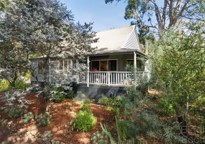 The home itself is beautifully light-filled and recently refurbished, featuring open-plan living, dining and kitchen spaces warmed by a wood fire, a large split system and ducted gas heating for year-round comfort. There are two generous bedrooms, a spacious ensuite and a second bathroom combined with laundry facilities. The private, fenced courtyard entry is framed by low-maintenance gardens, ensuring ease of care without sacrificing appeal. All this, just minutes to Daylesford and an easy 90-minute drive to Melbourne—offering the best of privacy, convenience and nature.