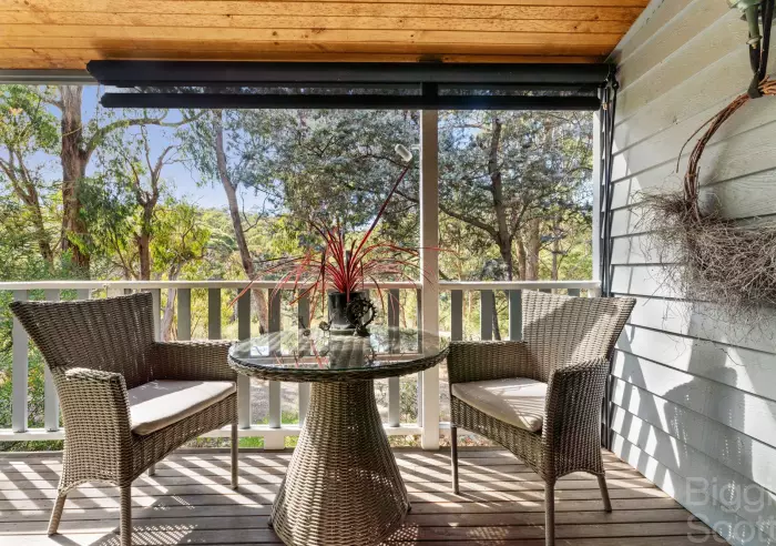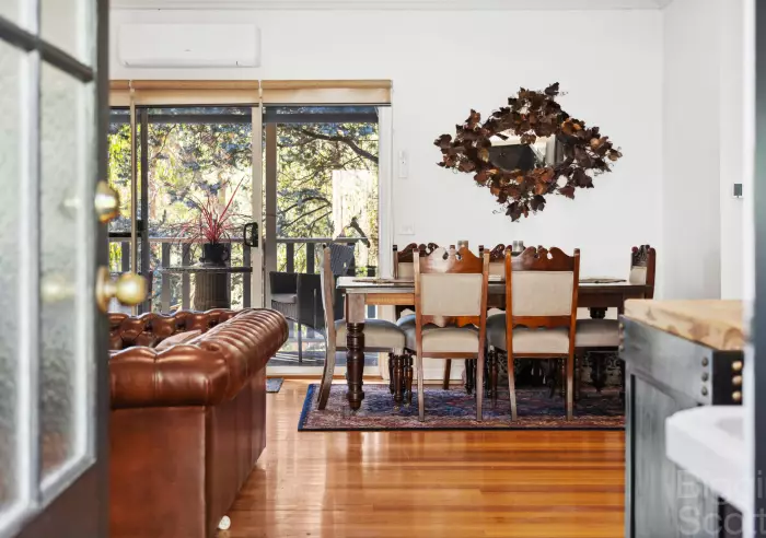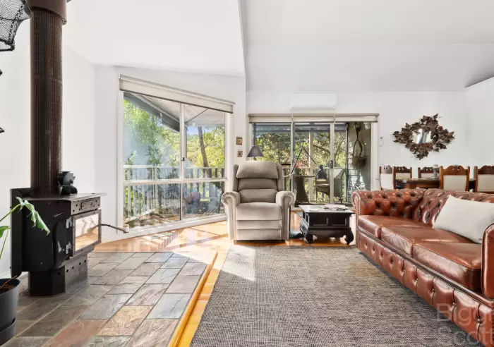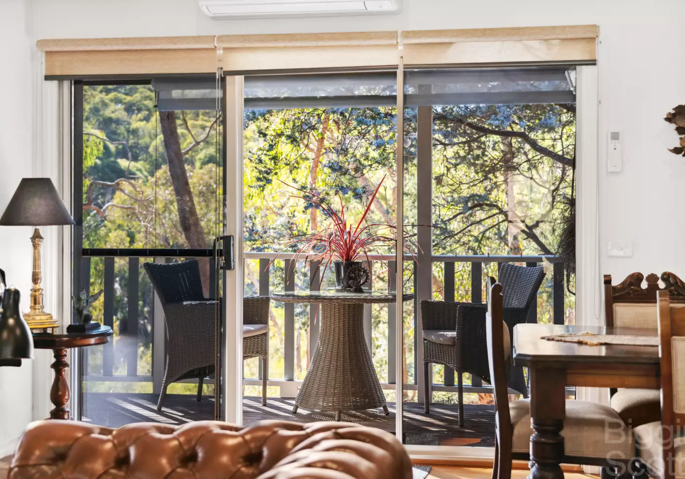 What truly sets this property apart is its breathtaking bushland outlook. The home directly adjoins the serene Hepburn Regional Park, offering sweeping views of natural greenery and nearby Spring Creek, with the historic creek swimming pool just a stone's throw away. The east-facing balcony is the perfect spot to soak up the tranquillity—whether it’s a morning coffee, relaxed evening meal or entertaining friends. Nature lovers will be charmed by the regular visits from kangaroos, echidnas and abundant birdlife, making this a peaceful sanctuary surrounded by the sights and sounds of the Australian bush.