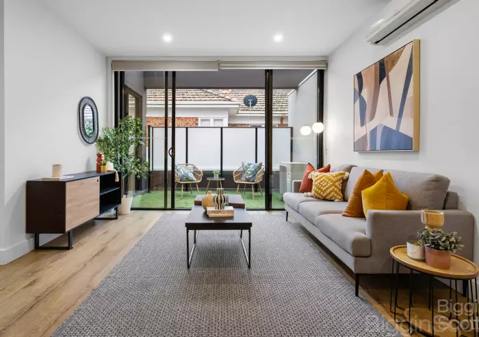 Enjoy elevated living, 102, with brilliant open plan kitchen, dining and sitting zone to a north terrace that is just fabulous. Add in the two bedrooms and two bathrooms and a décor that looks like vogue and you won’t say no to this fantastic apartment with secure basement parking and storage.
