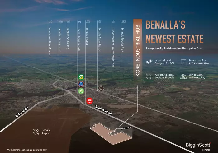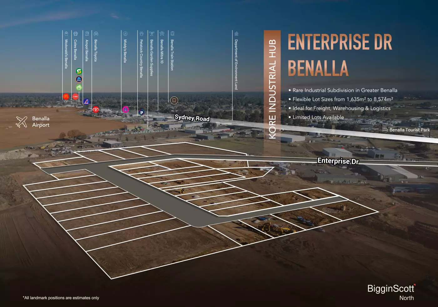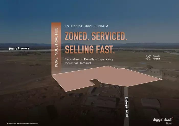 BigginScott North is proud to announce the initial release of just 5 industrial lots in Stage 1 of the Kore Industrial Hub, Benalla - and they're available only for a limited time in 2025.