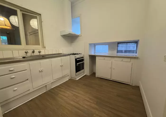 The kitchen is equipped with a brand new free standing cook top and oven, original cabinetry and ample bench space with direct access to a separate dining room.