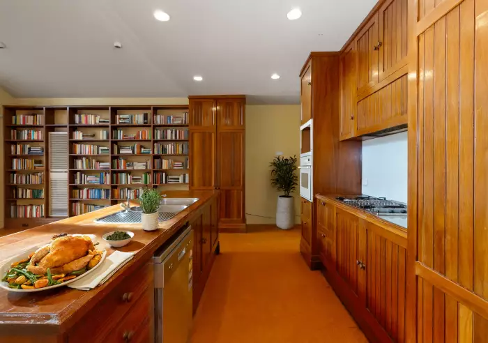 - Wooden timber kitchen with gas stovetop, dishwasher and ample cabinetry